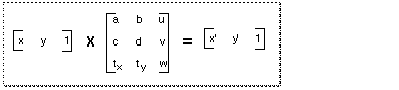 During display operations, the contents of a 3-by-3 matrix transform a point (x,y) into a point (x',y') by means of the following equations: