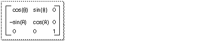 Finally, you can rotate an image by a specified angle by performing a rotation operation. You specify the magnitude and direction of the rotation by specifying factors for both x and y. The matrix shown in Figure 10-5 rotates an image counterclockwise by an angle q.