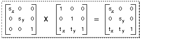 You can combine matrices that define different transformations into a single matrix. The resulting matrix retains the attributes of both transformations. For example, you can both scale and translate an image by defining a matrix similar to that shown in Figure 10-6.