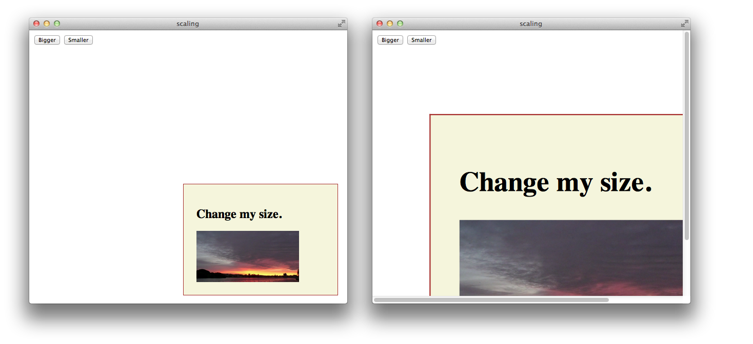 properties are unchanged, however, so the layout of the page is not affected. Consequently, scaling an element up can cause it to cover other elements on the page unless you design the layout to allow room for the expansion.