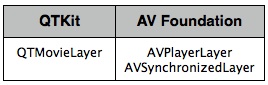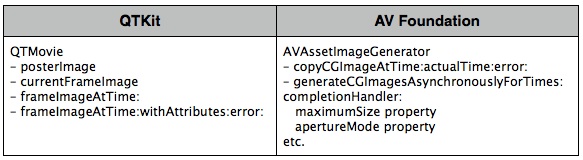 Here's a summary of the classes for representing audiovisual media with QTKit and AV Foundation: