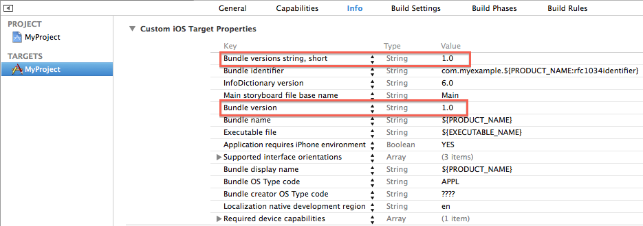 | Setting CFBundleShortVersionString of project MyProject to: |