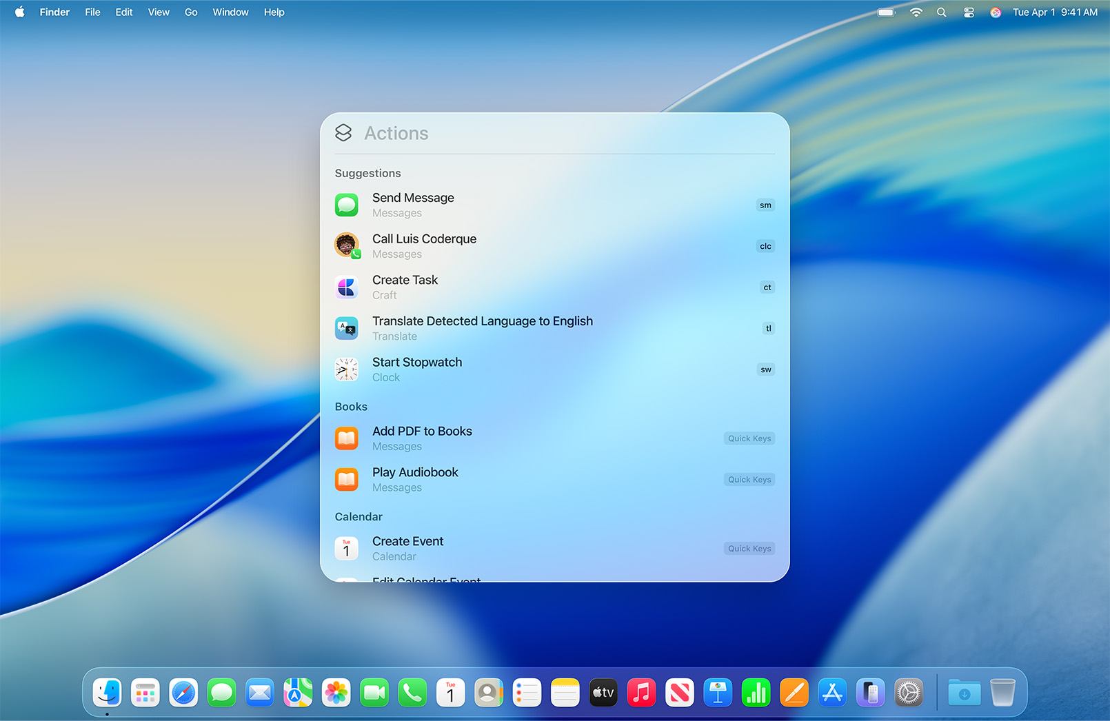 With the new Contacts API, third-party messaging and video calling apps can integrate with the Contacts app. Apps can “donate” contact information, allowing handles and addresses for third-party services to appear in the Contacts card and to be prioritized as a contact method using the quick contact buttons in the card.
